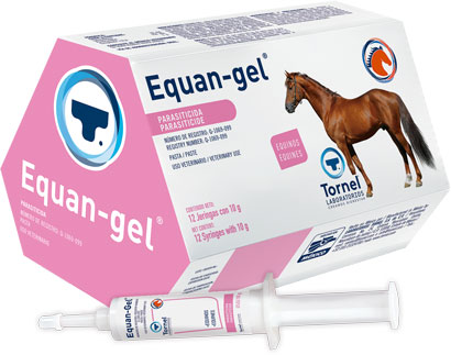 E quan-Gel®, está indicado para el control y tratamiento de infestaciones parasitarias internas y externas que afectan a los equinos tales como: Nemátodos (gusanos redondos): Strongylus vulgaris, S. equinus y S. edentatus. Pequeños estrongilos: Parascaris equorum, Onchocerca. También actúa contra el Gasterophilus spp y gusanos planos (céstodos) como Anoplocephala magna. A. perfoliata y Paranoplocephala mamillana, así como contra parásitos externos, como los piojos y los ácaros de la sarna.