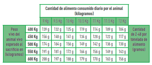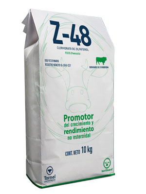 Z-48 está indicado para uso en ganado Bovino de engorda, en etapa de finalización para mejorar la eficiencia de la conversión alimenticia, y el rendimiento de la canal, así como mayor rendimiento al deshuese. La administración de Z-48 se puede extender hasta 56 días, garantizando un mayor rendimiento.